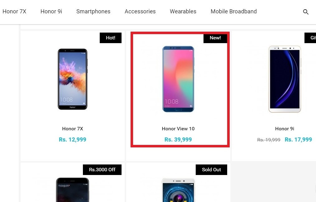 The company's India shopping website is spotted listing the Honor View 10smartphone with a price tag of Rs 39,999. Although this is not a confirmed price and may be a mere placeholder, it's appearance on the official Honor Store holds some credibility.